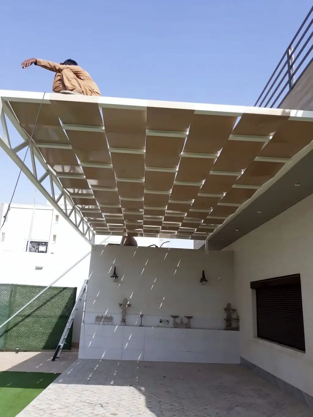 نحن مؤسسة الأنجاز  للمظلات والبرجولات هي علامة فارقة في عالم الأنجاز المعماري، حيث التميز والجودة يلتقيان مع الذوق الرفيع والخبرة الواسعة. نضع بينلأن أيديكم سنوات من الاحتراف، لنقدّم لكم حلولاً متكاملة في عالم المظلات، السواتر، البرجولات، الخارجية، والهناجر، بما يتناسب مع أعلى المعايير الفنية والجمالية.